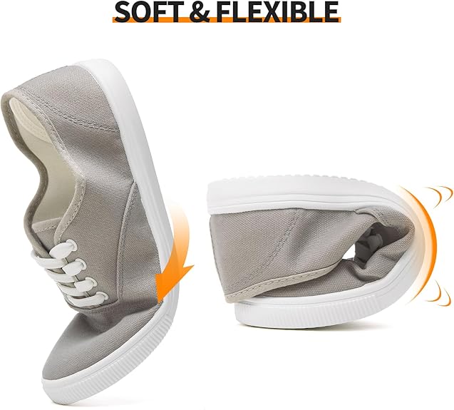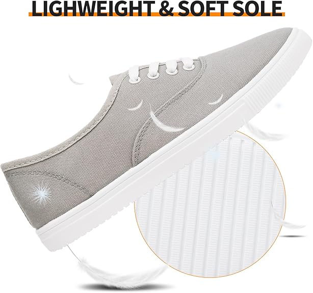 Womens Classic White Sneakers,Low Top White Canvas Shoes,Lightweight Casual Canvas Sneakers